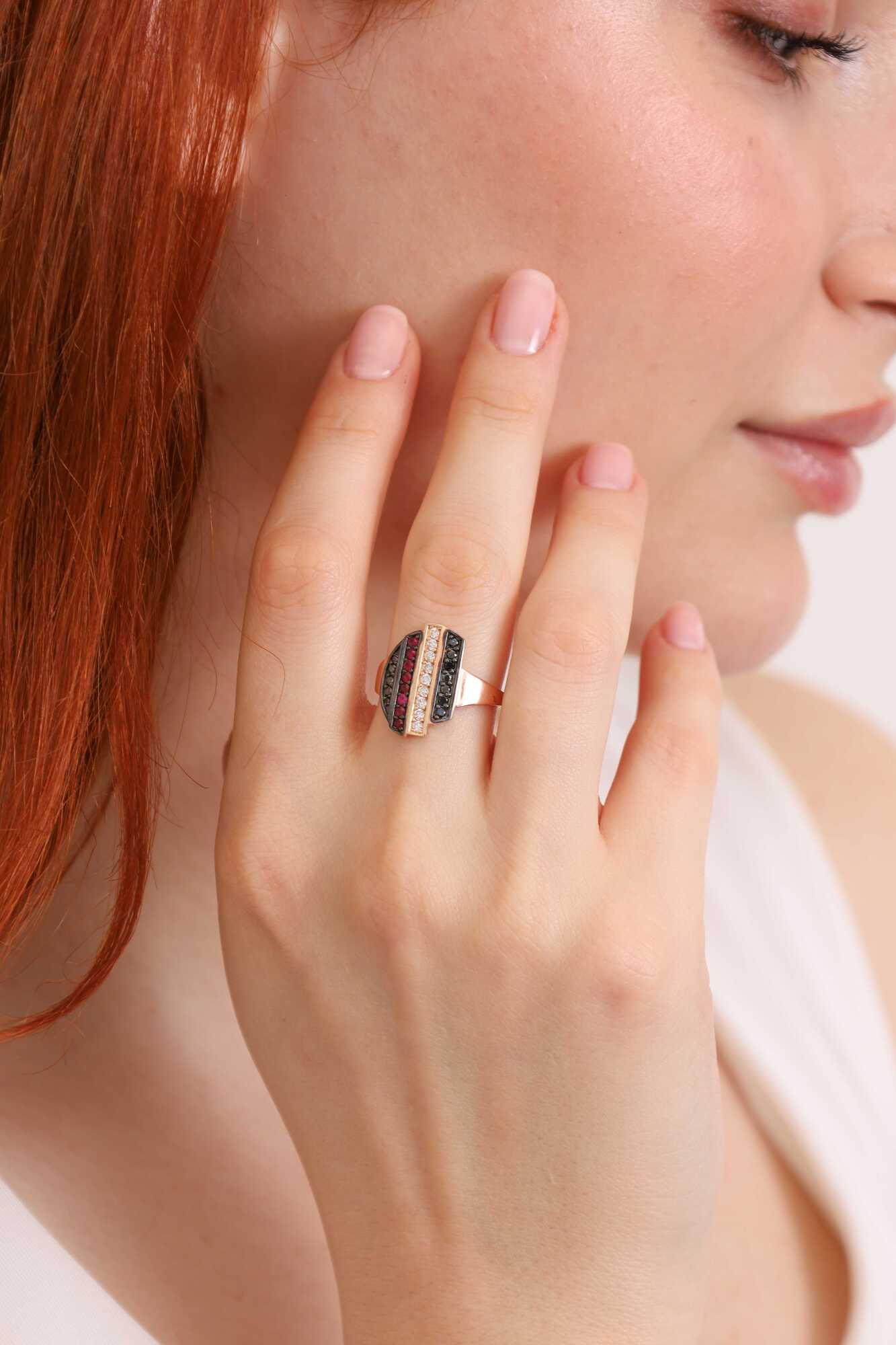 Toplam adet ve karat: 10 Adet toplam 0,23 karat Yakut / 9 Adet toplam 0,32 karat Siyah Pırlanta / 9 Adet toplam 0,18 karat Beyaz Pırlanta